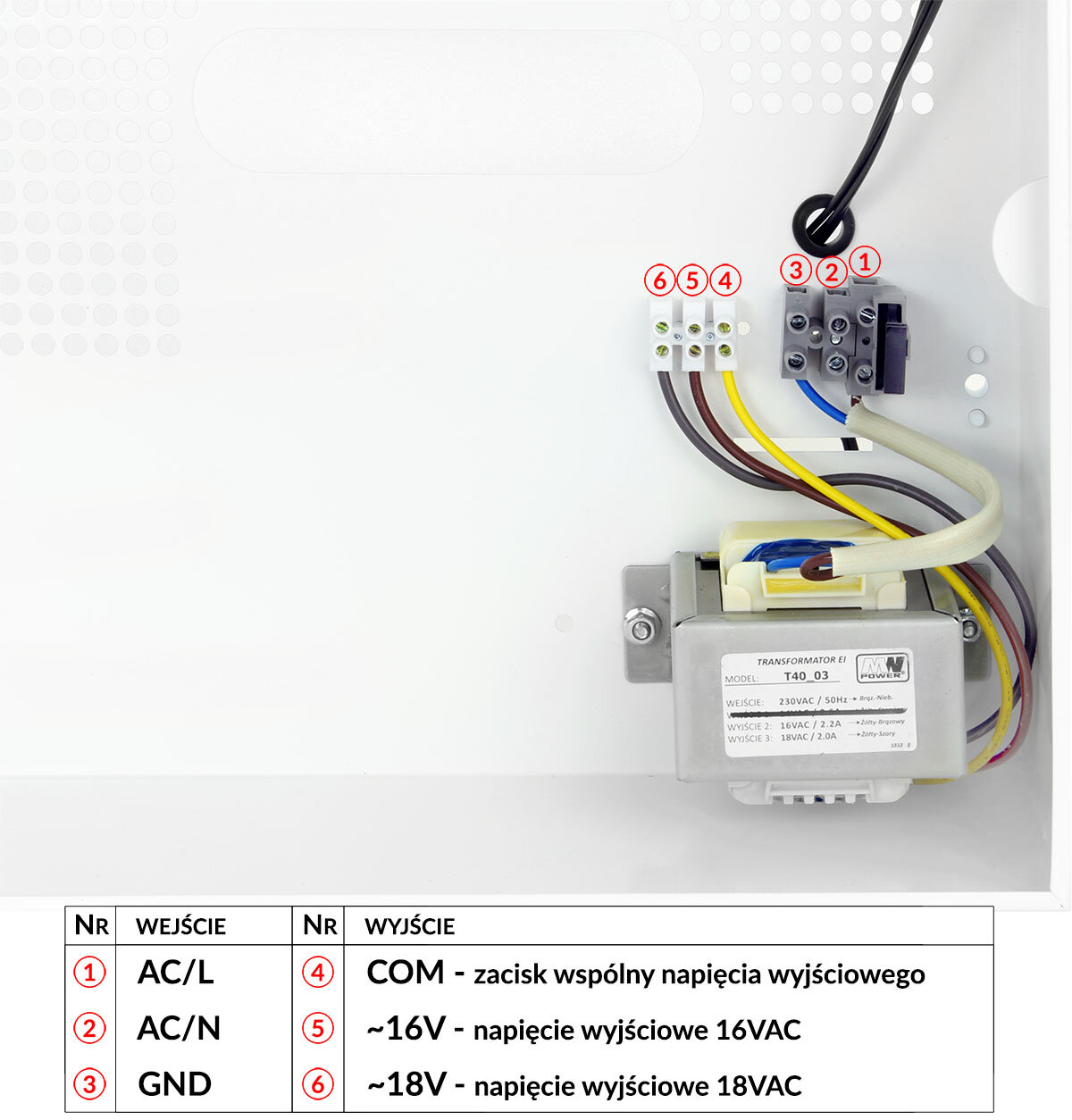 Beschrijving van ingangen/uitgangen van OC40-172-behuizing