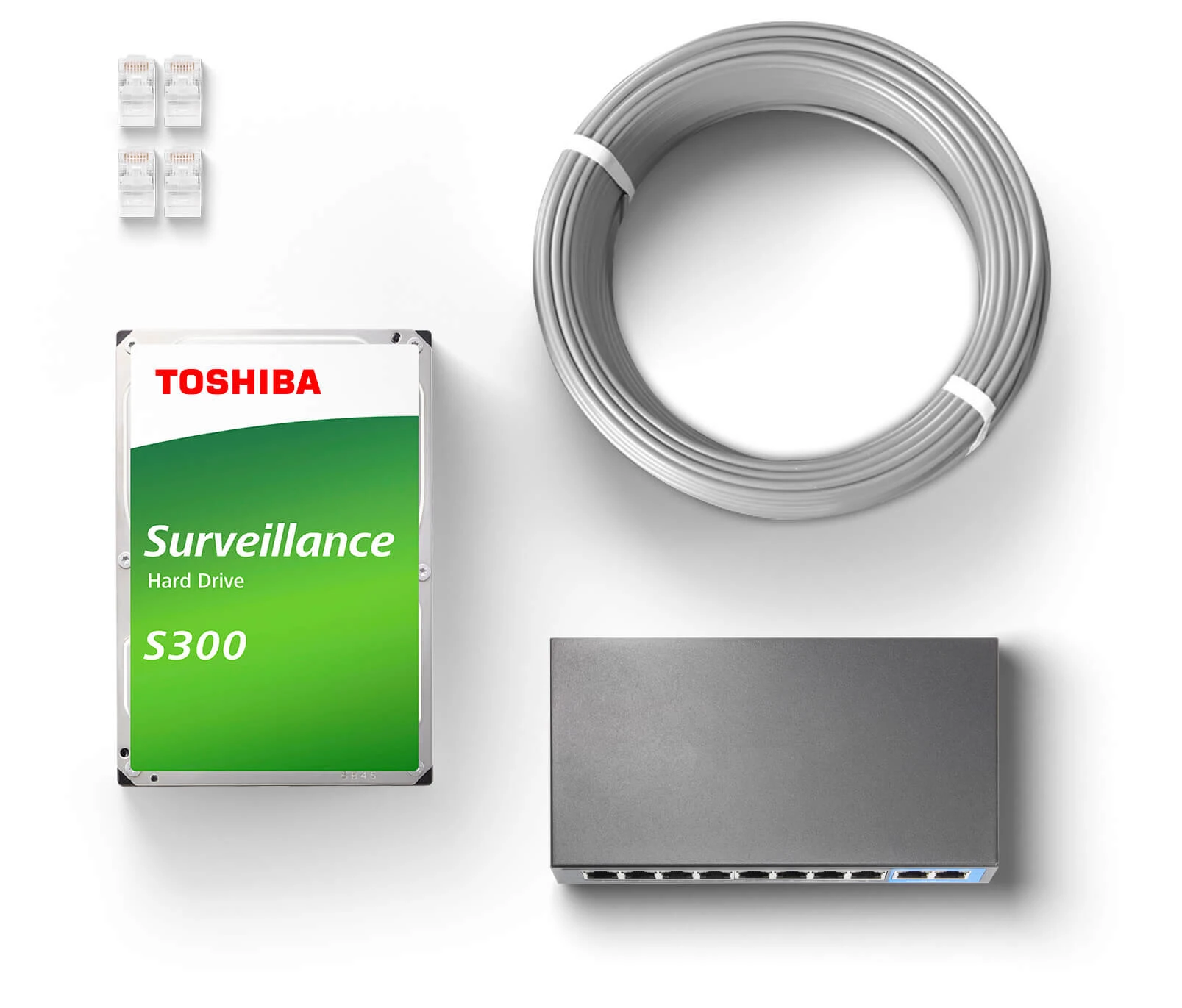 Dit is een moderne oplossing met een breed scala aan toepassingen. Grijp naar deze universele set als je bijvoorbeeld geïnteresseerd bent in het bewaken van kamers, terreinen of objecten zowel binnen als buiten. Hij zal overal van pas komen waar kabelinstallatie mogelijk is.