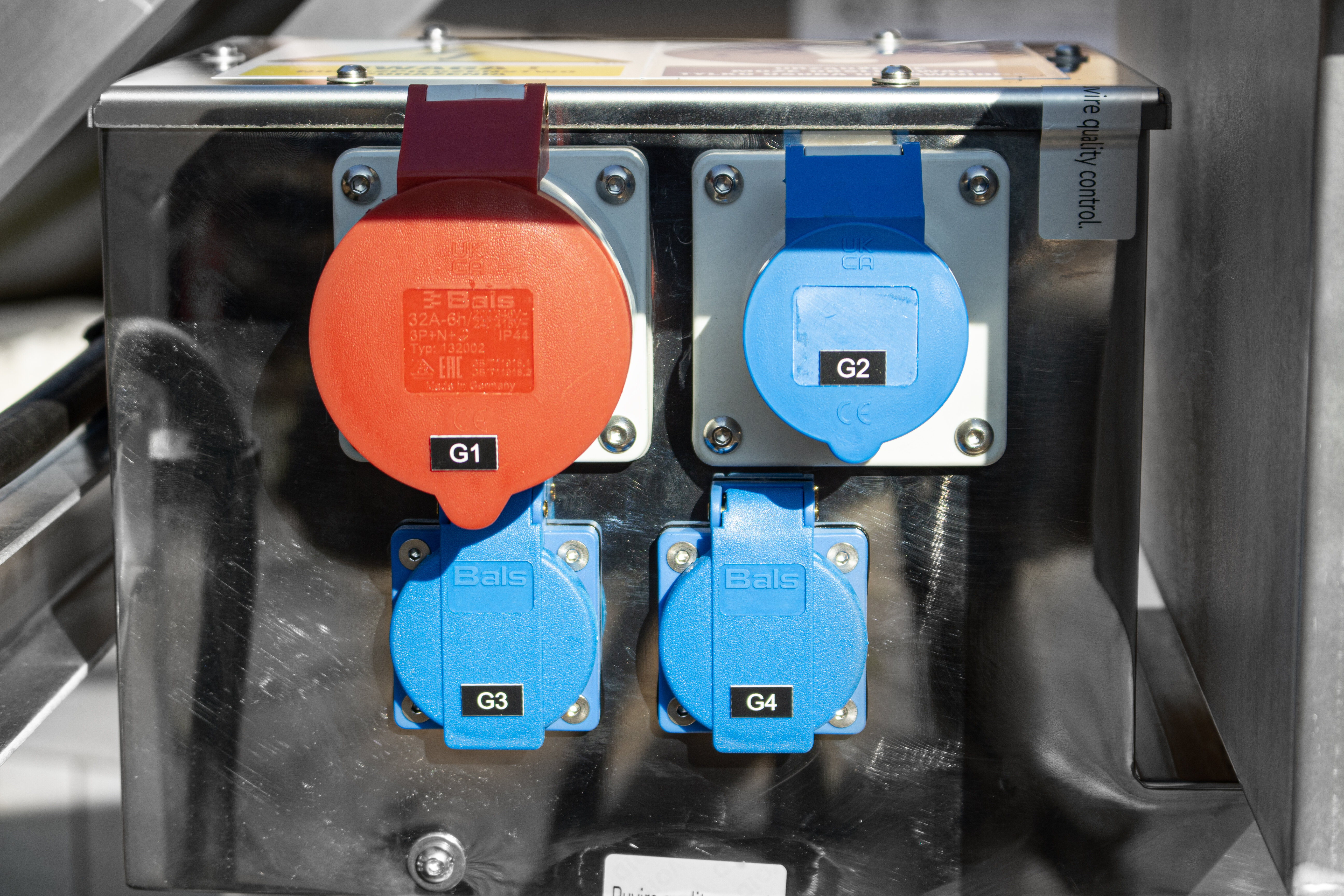 - Stopcontacten voor 400 V AC: 1 x 32A/400V - IP44