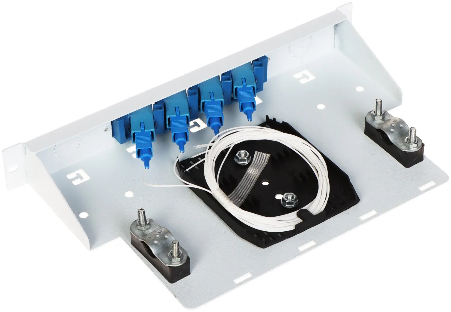 De EXPERT-POE/OTD-8G2GSFP set bestaat uit een PoE-switch met 8 poorten, extra uitgerust met 2 SFP Uplink-poorten, geïntegreerd met een glasvezelswitch, zekering en bliksemafleider, in een buitenbehuizing met beschermingsklasse IP55.