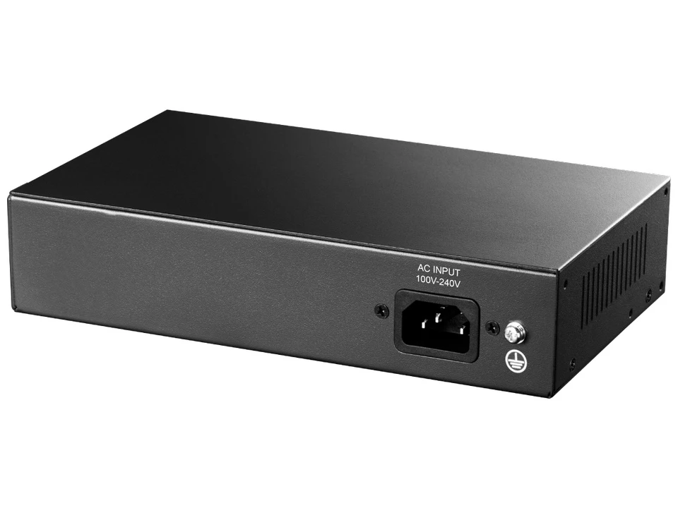 De switch is uitgerust met 6 poorten, waarvan 4 poorten PoE+ ondersteunen. Met PoE+ kan tot 30 W vermogen worden geleverd aan elk van deze poorten, wat voldoende is om meer veeleisende netwerkapparaten van stroom te voorzien. Een extra 2 uplink poorten worden gebruikt om de switch aan te sluiten op