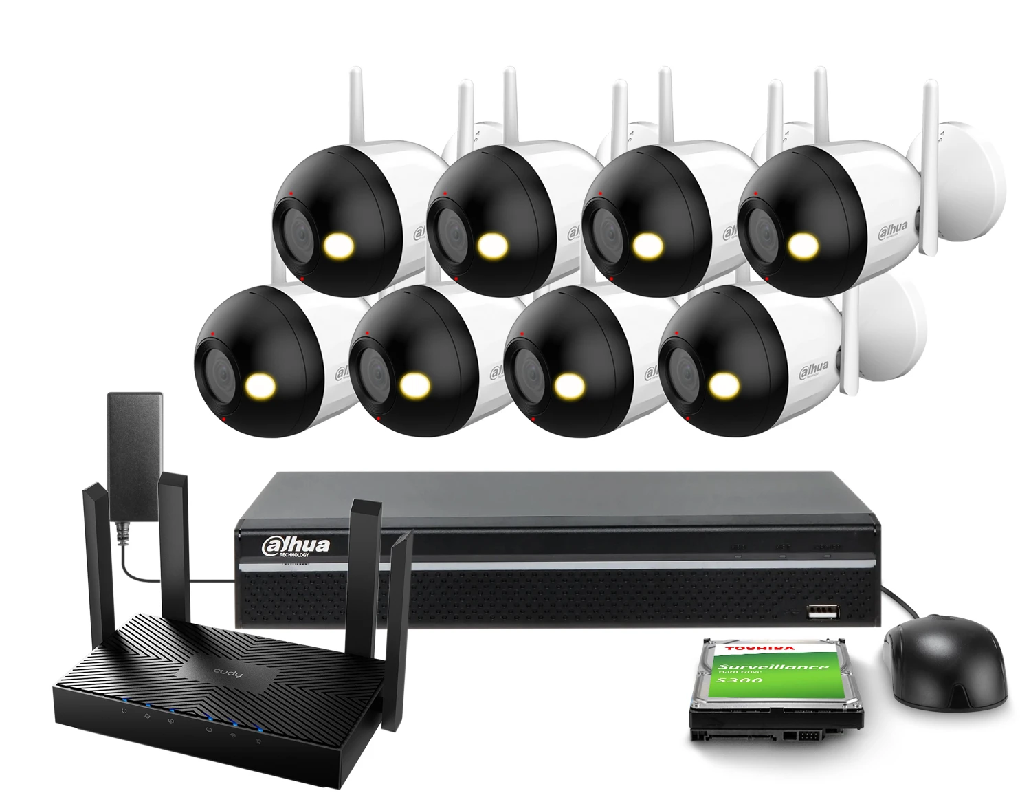 Wi-Fi bewakingsset 8x F4C-PV 4Mpx IR 30m Dahua