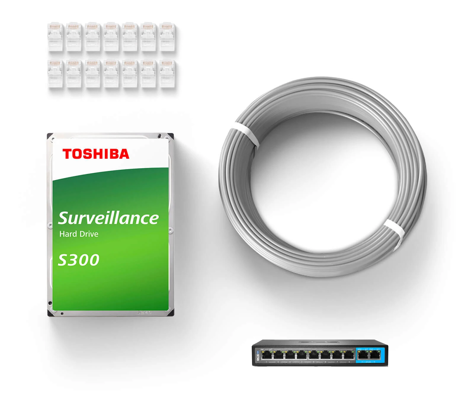 - 1x Toshiba S300 harde schijf met een capaciteit van 1TB uit de Surveillance serie, speciaal voor CCTV oplossingen ( 1 pc )