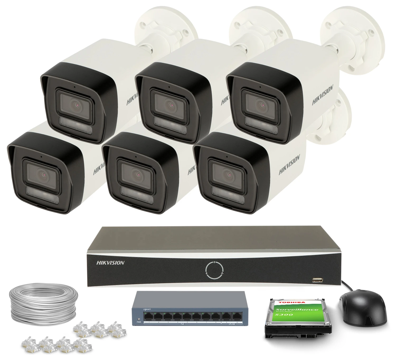Zestaw voor bewaking 6x DS-2CD1043G2-LIU, DS-7608NXI-K1(D) 4 Mpx 2.8mm, IR 30m Smart Hybrid Light Intelligente detectie Hikvision