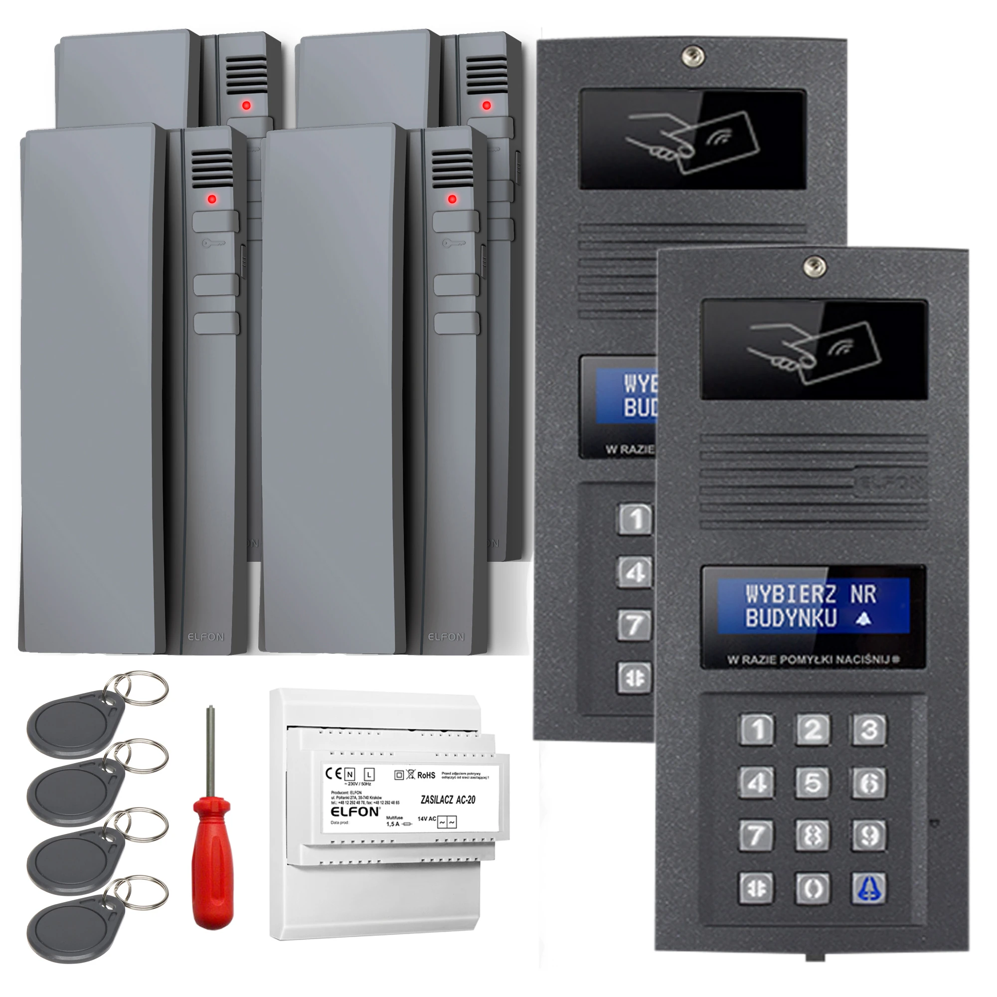Digitaal intercomsysteem ELFON 2x OP-SL255R-G Grafiet Inbouw, 4x OP-U7-S Grijs