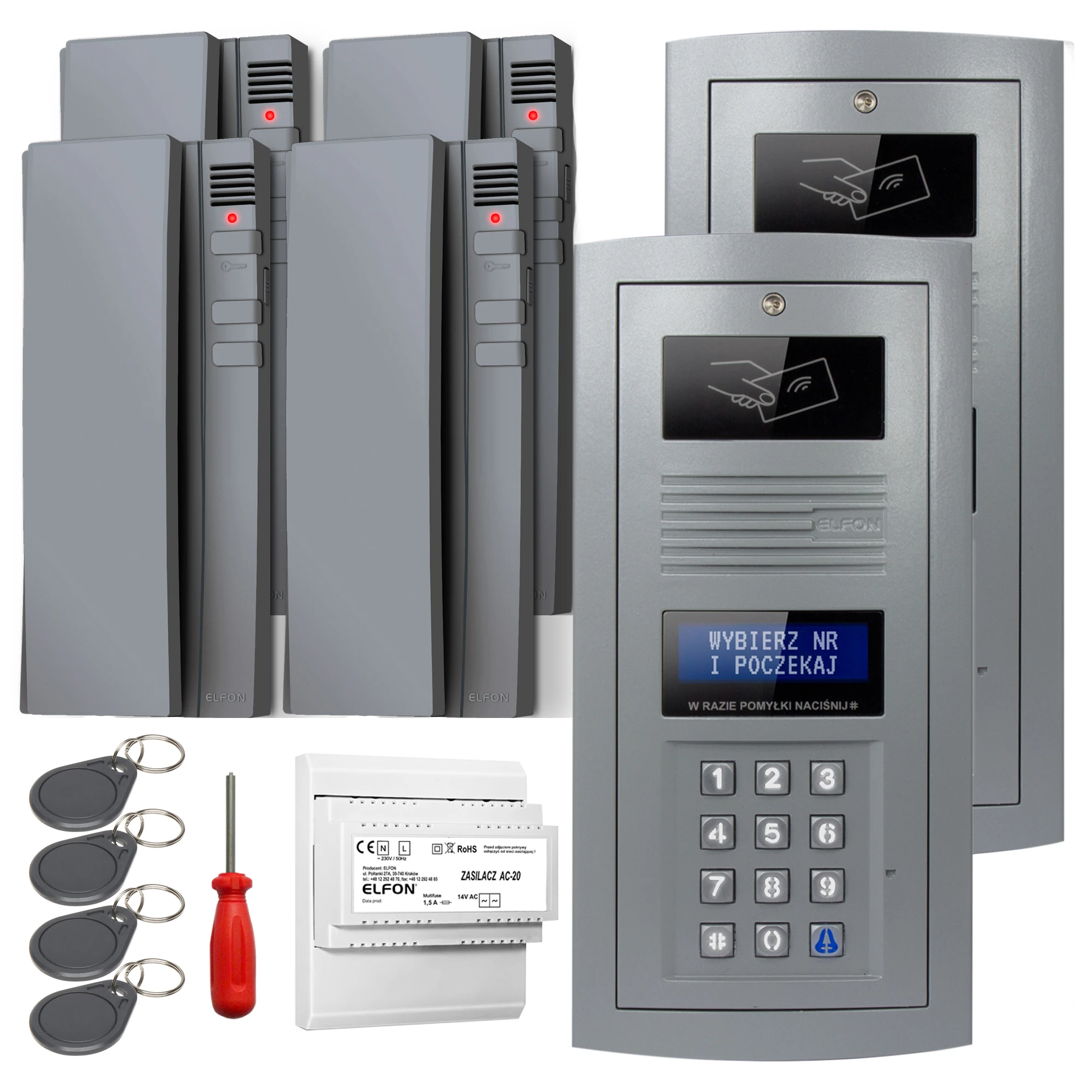 Digitaal intercomsysteem ELFON 2x OP-SL255R-P Grijs Opbouw, 4x OP-U7 Grijs