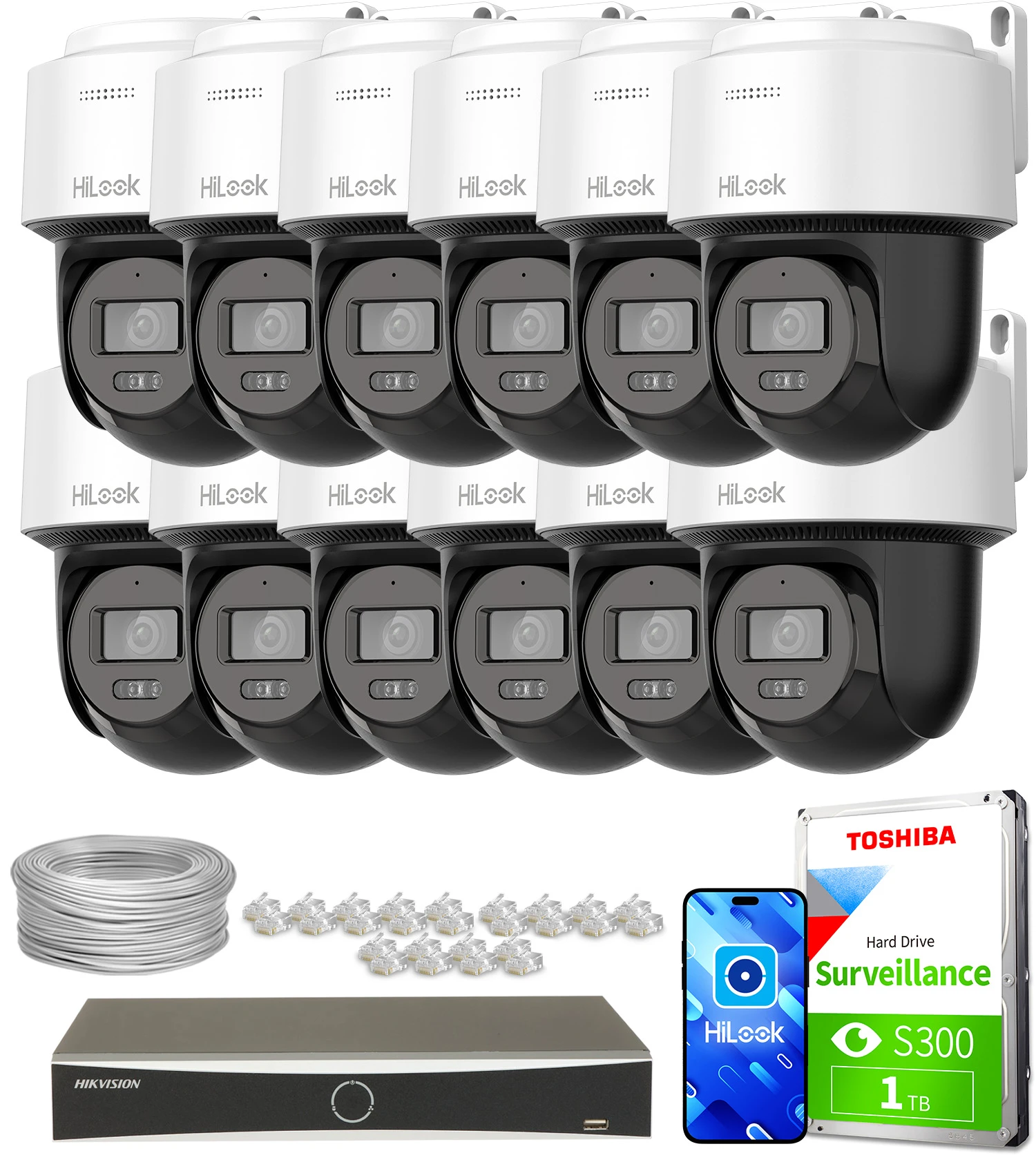 Bewakingsset 12x PTZ-N4MP-P DS-7616NXI-K2/16P(D) 4Mpx, IR30 HiLook by Hikvision