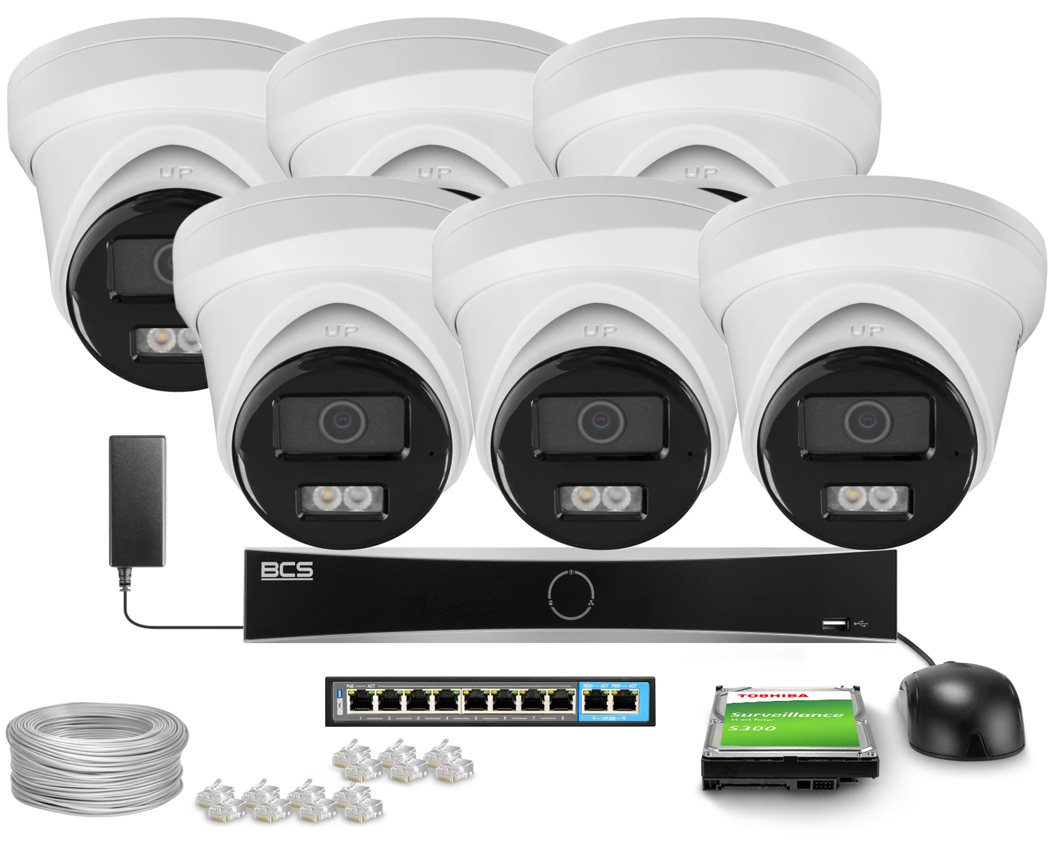 Zeset voor bewaking 6x BCS-V-EIP16FSR3L3(2) 6Mpx, SkyLight, NightColor, IR 30m, PoE