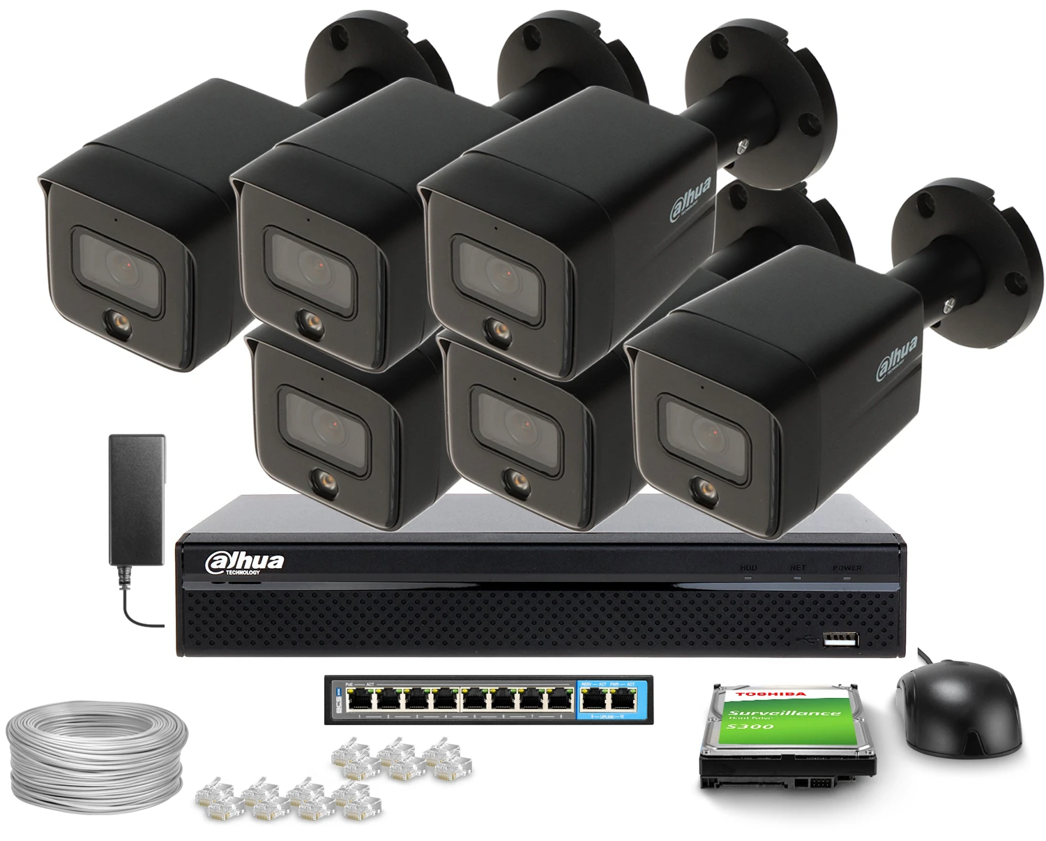 Dahua IP-bewakingsset 6x IPC-HFW1639TC-A-IL-0280B-S6 ZWART Smart Dual Light 6 Mpx 2.8mm Dahua