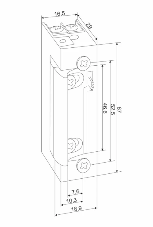 - Hoogte 67 mm, breedte 16,5 mm ontworpen voor gebruik in smalle profielen