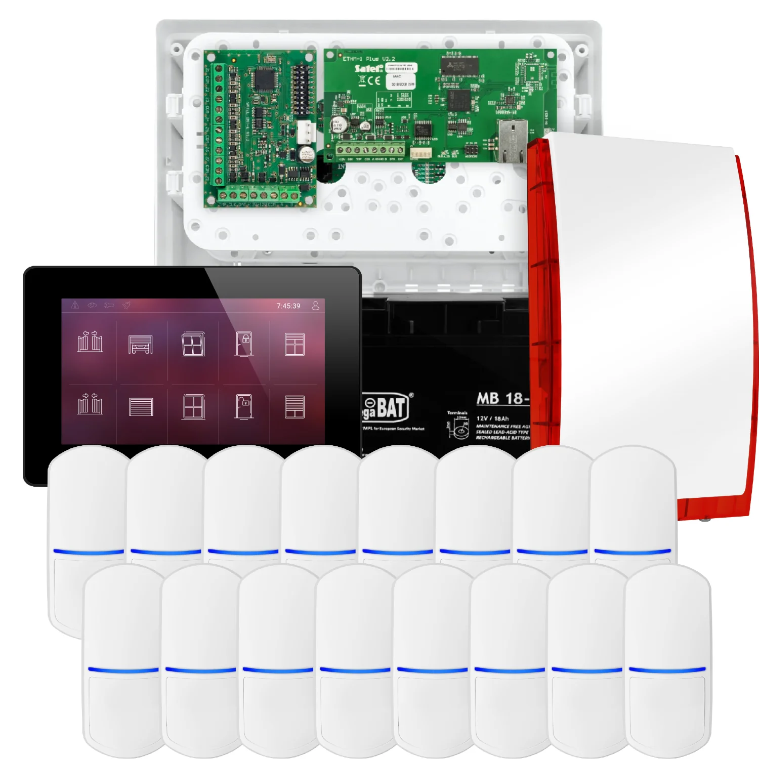 SATEL INTEGRA 32 alarmsysteemset, 16x detector, sirene, zwarte bedieningspaneel INT-TSH2-B