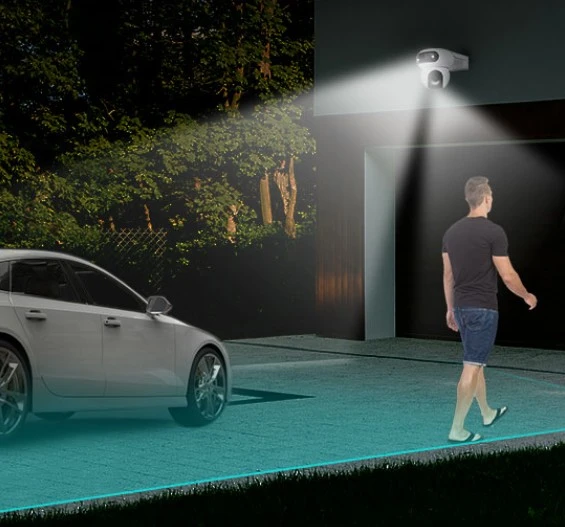 In tegenstelling tot camera's met een vaste hoek, die bewegende objecten snel uit het oog verliezen, past de HB90 Dual de positionering van de lenzen dynamisch aan om gedetecteerde activiteit te volgen. Zodra iemand de detectiezone binnenkomt, volgt de camera automatisch de persoon en begint deze te volgen.