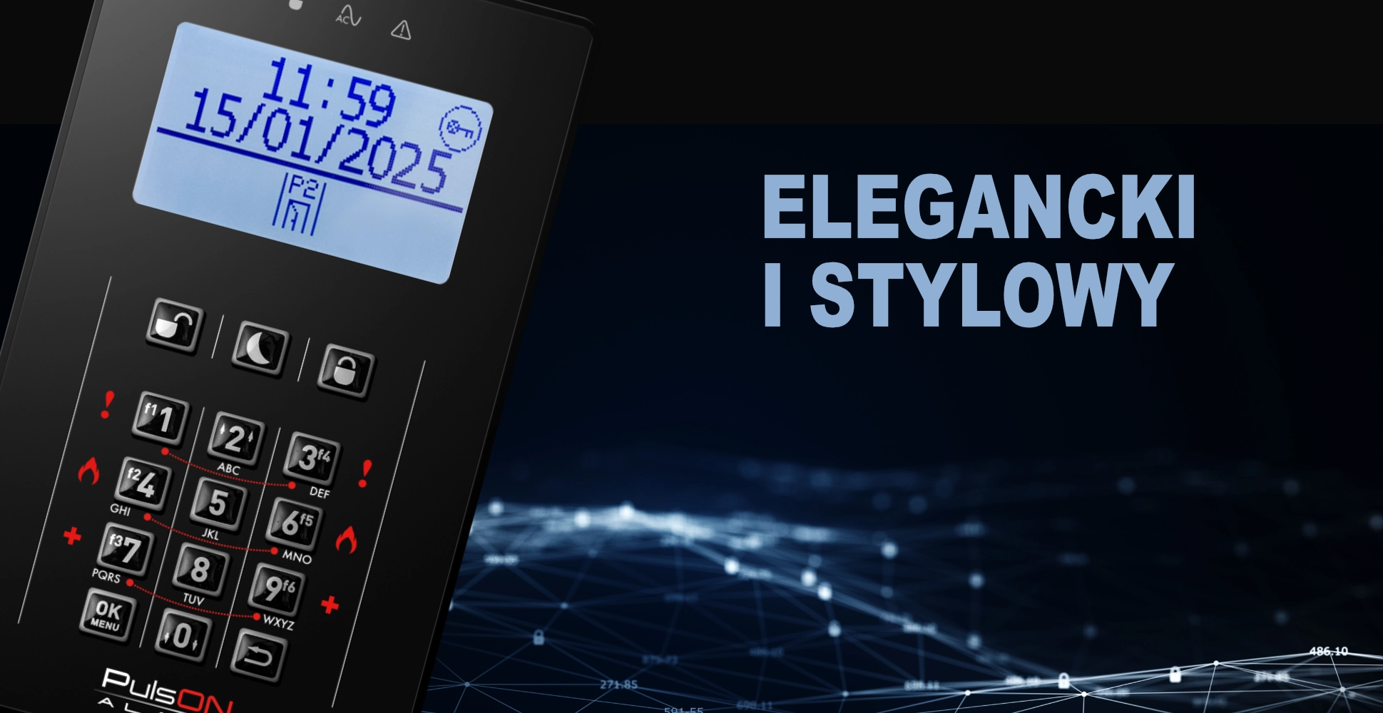 - Manipulator PulsON LCD/C – czytelny LCD, 6 klawiszy funkcyjnych + 3 alarmy specjalne (pożar/panika/medyczny), 2 wejścia linii.