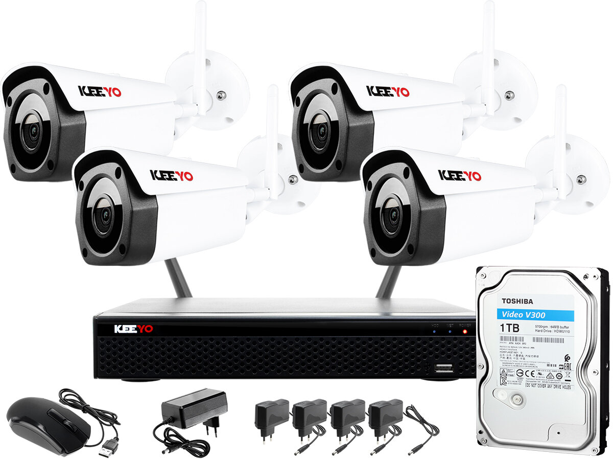 - Set: WIFI DVR, 4 Wifi IP-camera's, 5 x voeding, muis