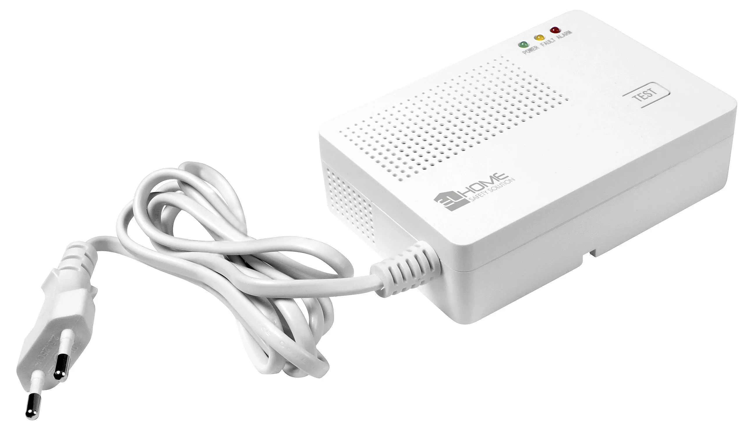 Czujnik EL HOME GD-04A4 z sensorem półprzewodnikowym stale monitoruje powietrze w pomieszczeniach i reaguje na obecność gazu ziemnego oraz LPG; przy przekroczeniu progu uruchamia alarm akustyczny 85 dB/1 m oraz optyczny, skutecznie ostrzegając domowników (zasięg detekcji ok. 20–25 m²).