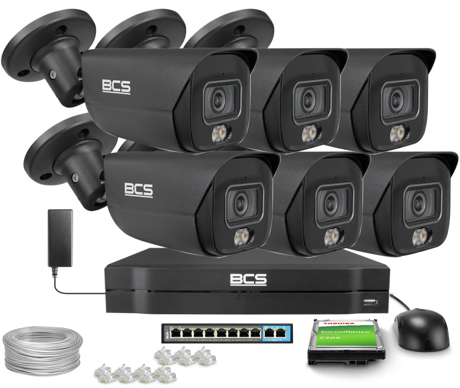 Zestawy do monitoringu IP 6x BCS-L-TIP28FCR5L5-Ai1-G 8Mpx, WhiteLight 50m, WDR120dB, NightColor