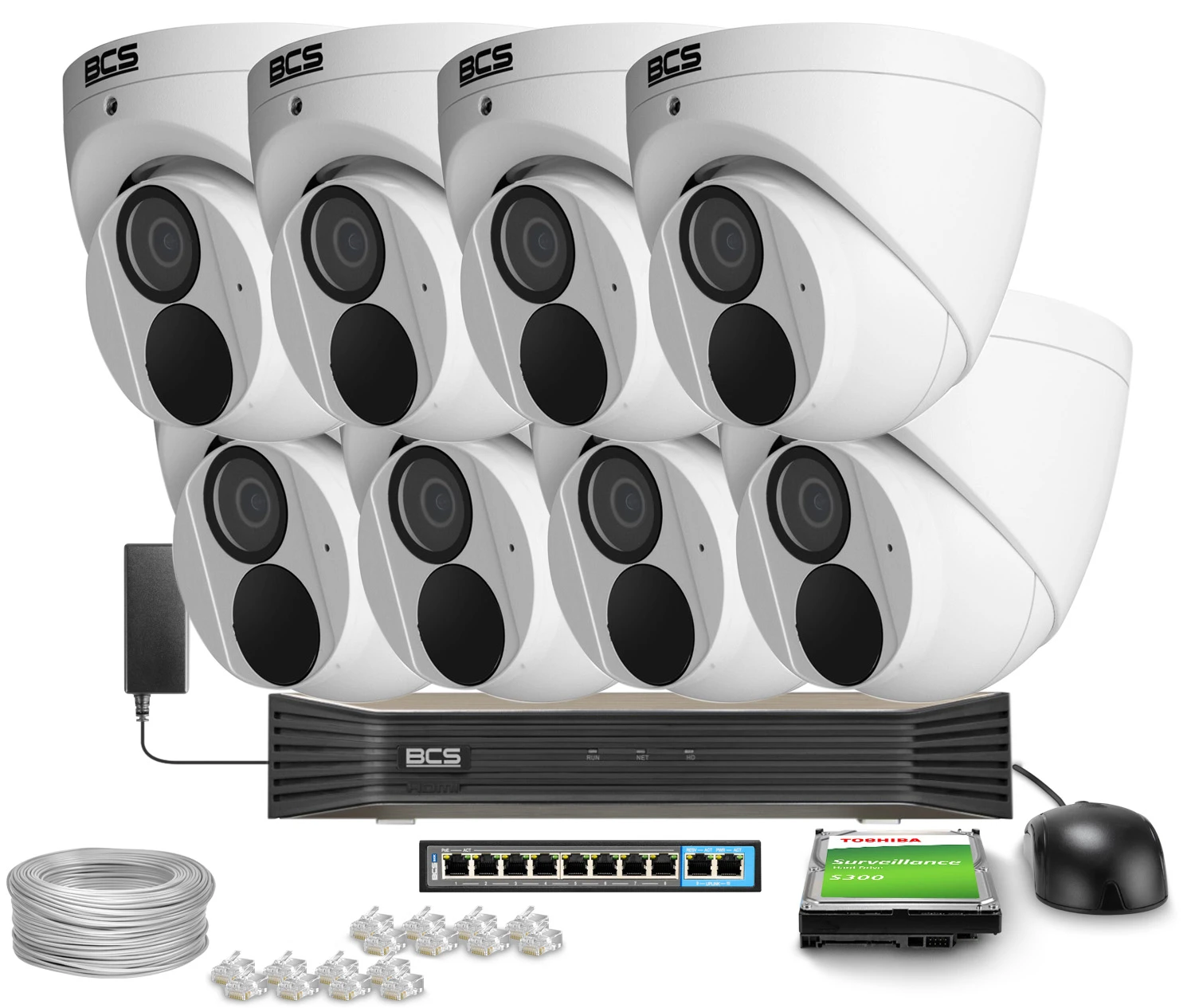 Zestaw do monitoringu IP 8x BCS-P-EIP25FSR3-Ai2, 5Mpx, 2.8mm, WDR120dB, SkyLight IR 30m
